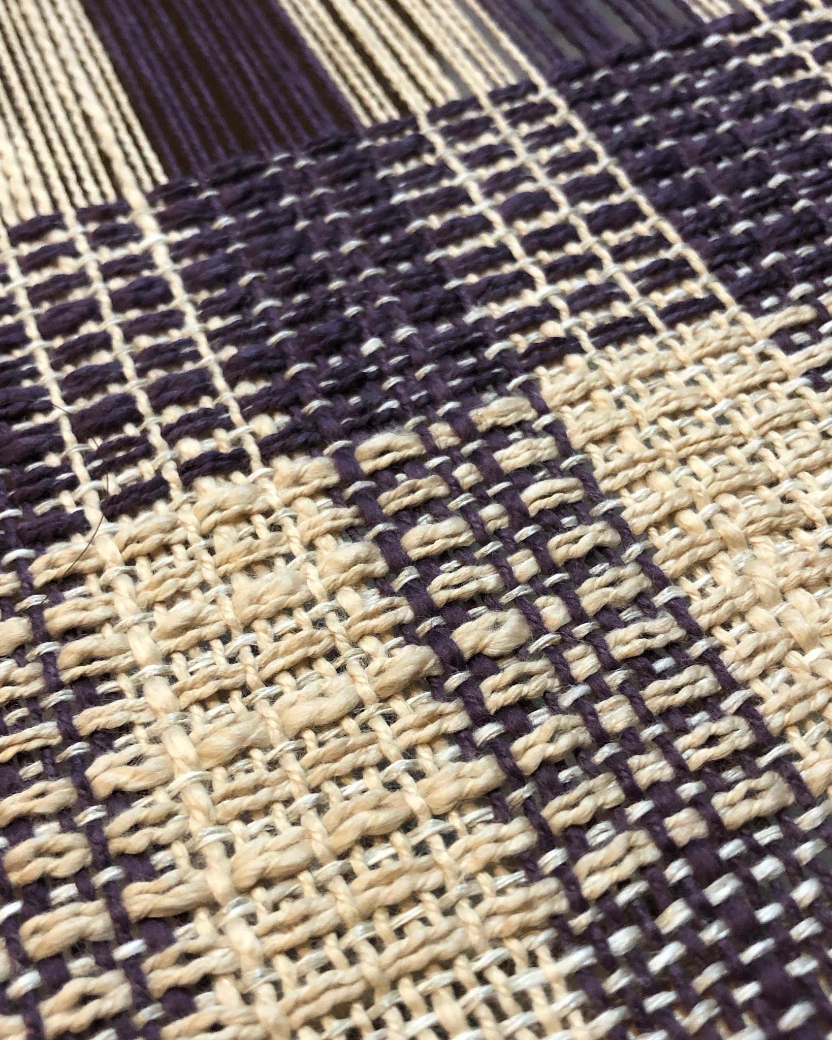Weft: Mallo Cotton Slub, 160 yds Ink, 130 yds Clay. Duet Cotton/Linen, 360 yds Marble.