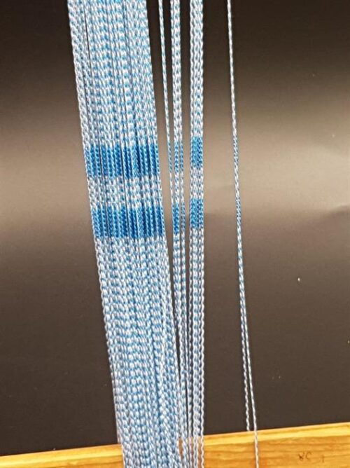The heddles are easily set up and organized on the loom shafts. They are bundled in a continuous row so they will not be tangled up. The heddles are joined but can easily be separated if necessary, e.g. if a heddle needs to be removed or replaced.