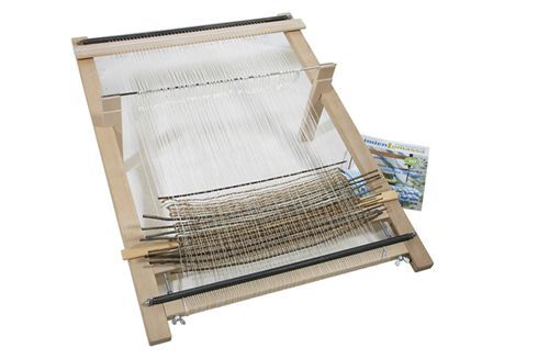 Weaving on the tapestry frame is easy. Two sheds are created with the help of half heddles and a lath. The tapestry frame is accompanied with clear instructions on how to wind the warp.